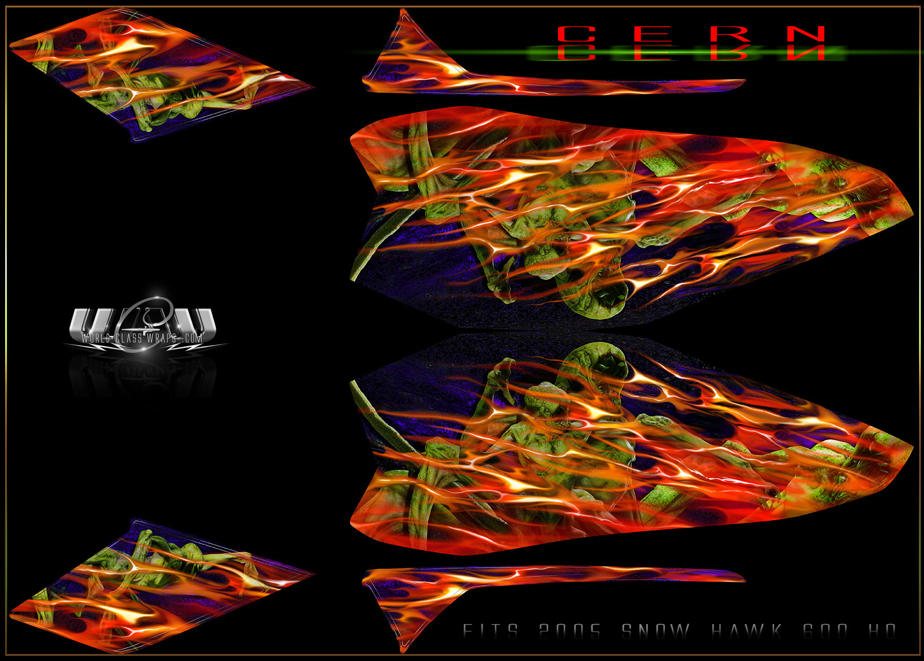 Custom CERN mural wrap for 2005 Snow Hawk 600 HO SnowmobileFITS