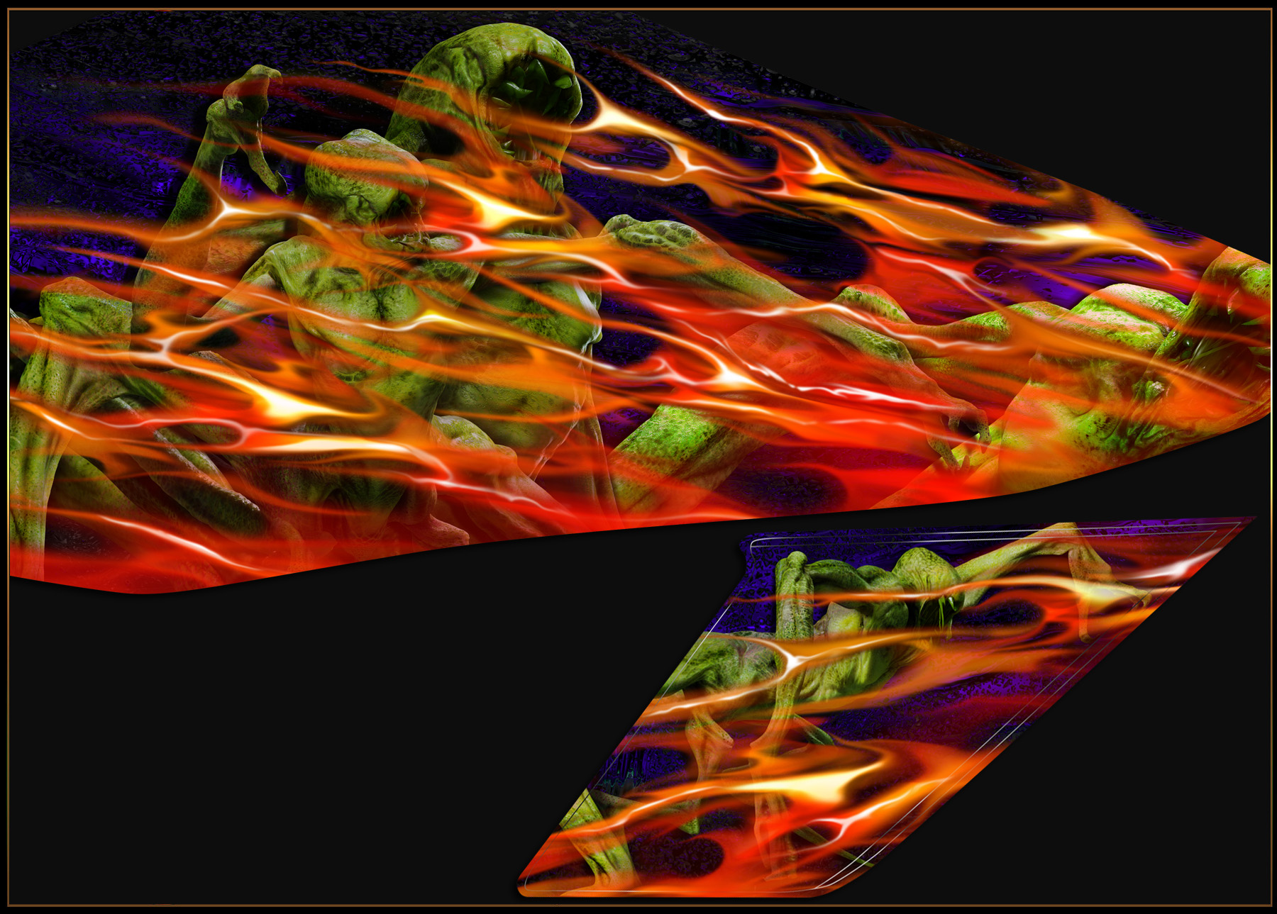 This custom Cern design is a full depth sharp edged scenic mural. Flames were meticulously air brushed to enhance visibility.