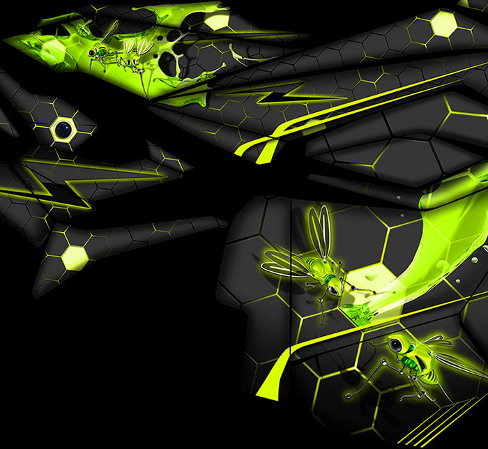 If you're looking for something different than all the rest, a graphics package with a lot of fine details and realism, you're sure to find a skidoo wrap here that suits your style. All custom designs are meticulously crafted by a professional artist whom spares no time in making it perfect.