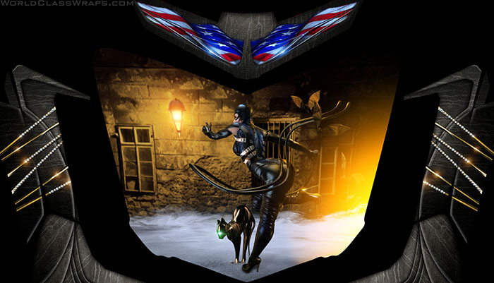 Premium - Spyder F3 Custom Themed WrapThis show quality Cat-Woman theme was digitally air brushed for the Can-Am Spyder F3. As always, depth and details are endless. Click on any of the medium preview images and it will open a larger view in a fresh tab.