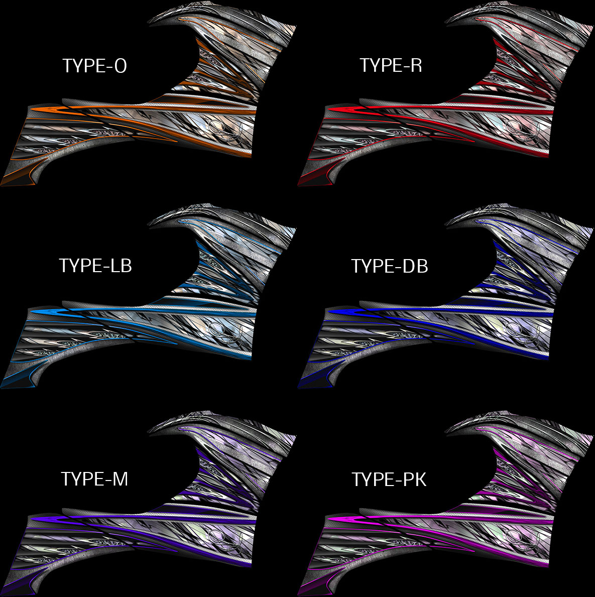 Another luxurious design for your Spyder. Details are strategically placed over a base of white, silver and charcoal carbon fiber, along with a touch of complimentary metals in specific areas. And the pinstripes were embedded as a classic touch. This package was designed to be show quality, and toned down in terms of overall coloring so that it blends well with either dark or light base colors of the bike.