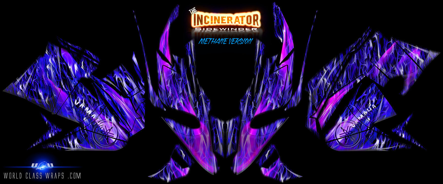 Highly detailed 'INCINERATOR METHANE' Sled Wrap fitted to the Yamaha Sidewinder snowmobile