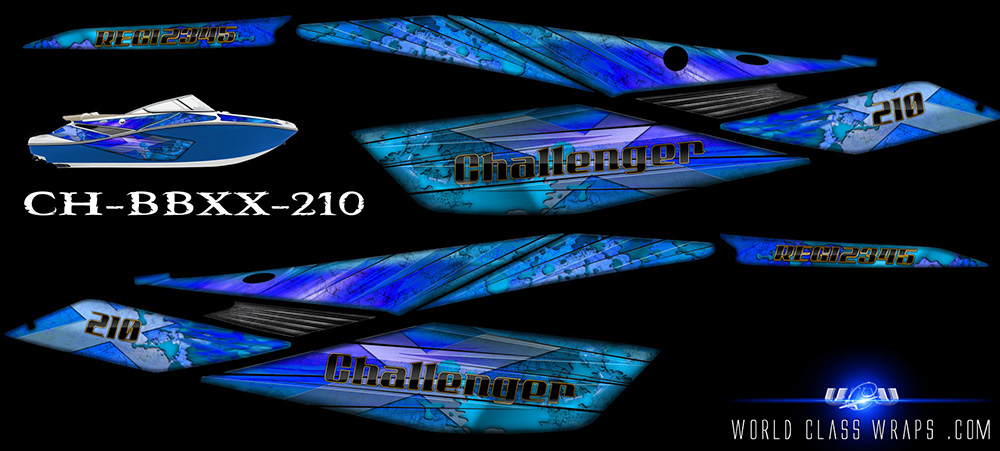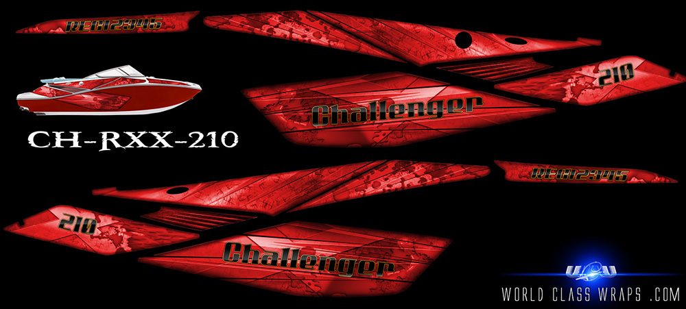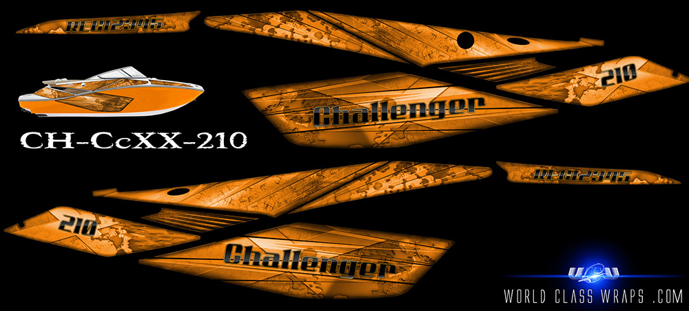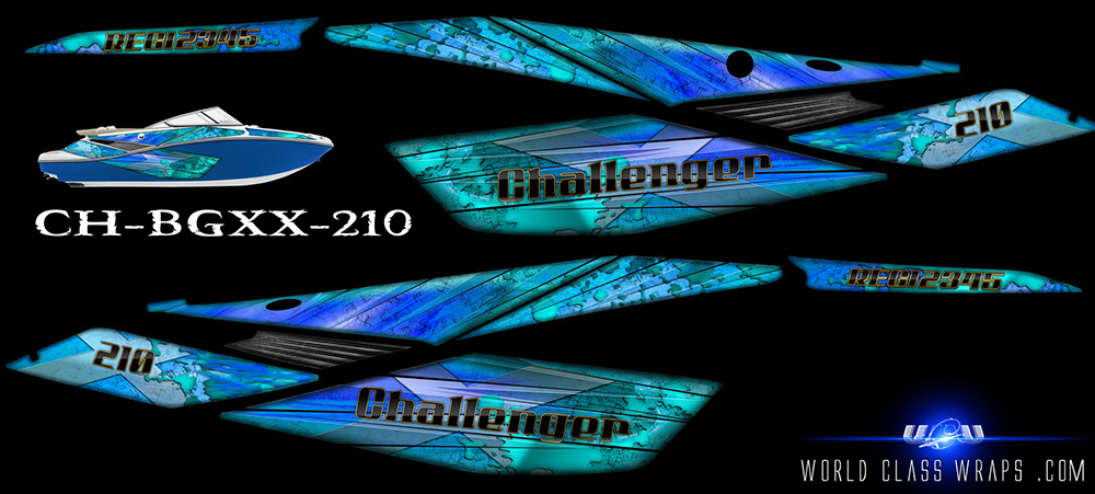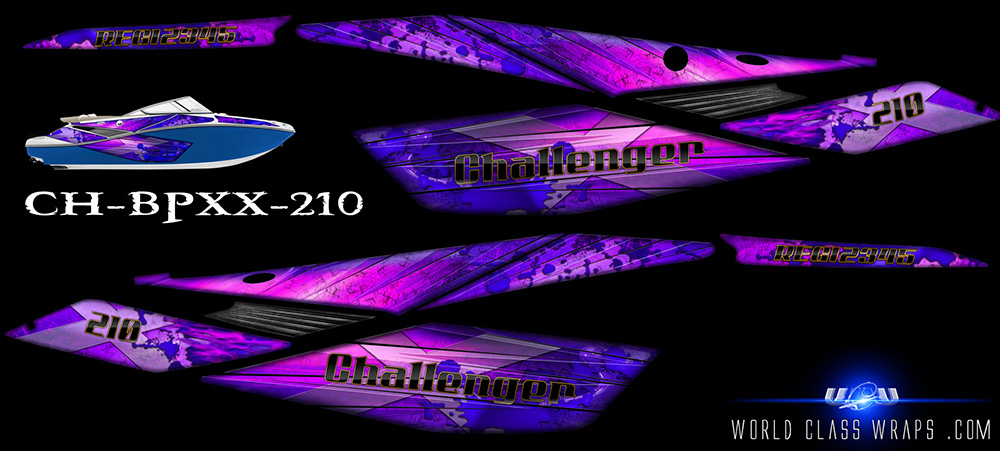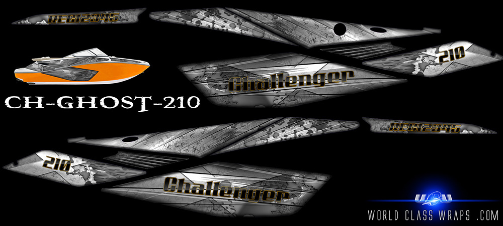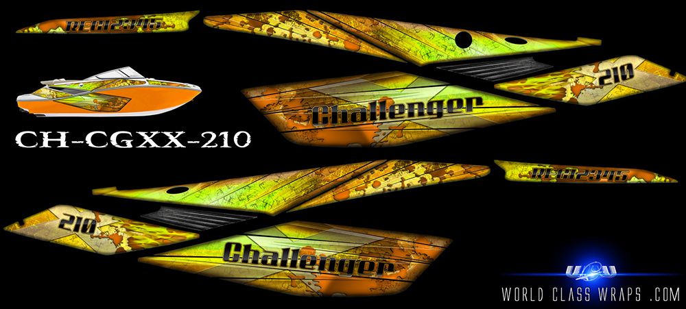 Graphics sets for the seadoo Challenger 210 jet boats.