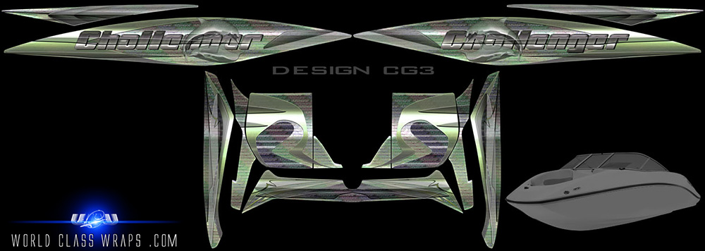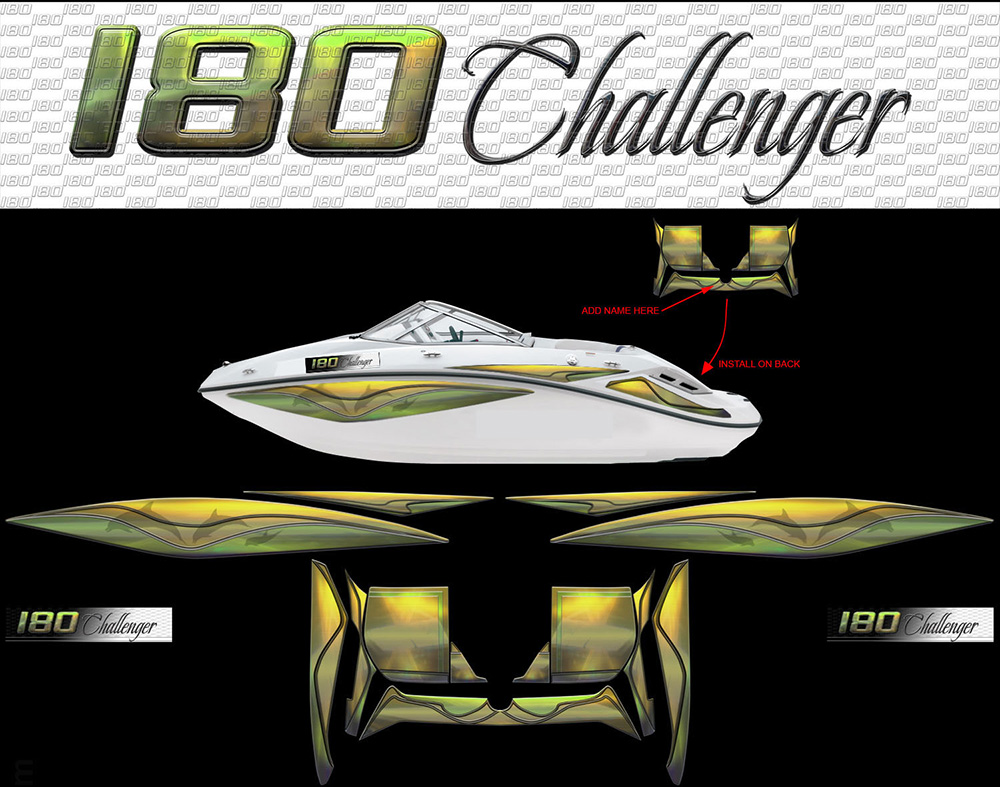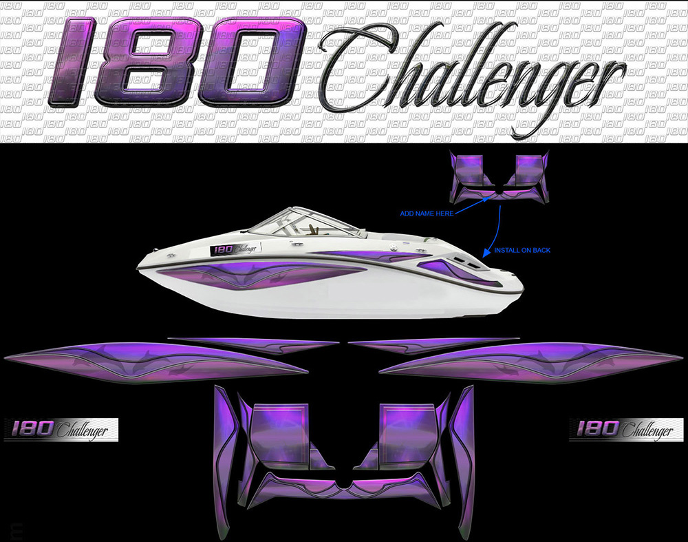 Challenger kits for all years! These custom-order graphics packages were designed exclusively for the various seadoo Challenger models throughout the many years. The boats are great performers and these graphics will revitalize their appearance. You will discover the various sections for the boats by scrolling down this page. Click on a category, click an image, then click again for more details.